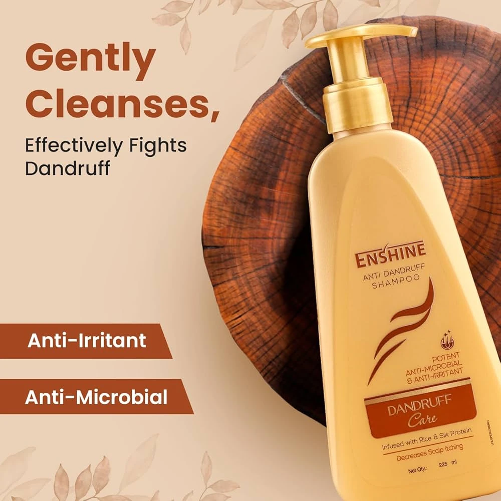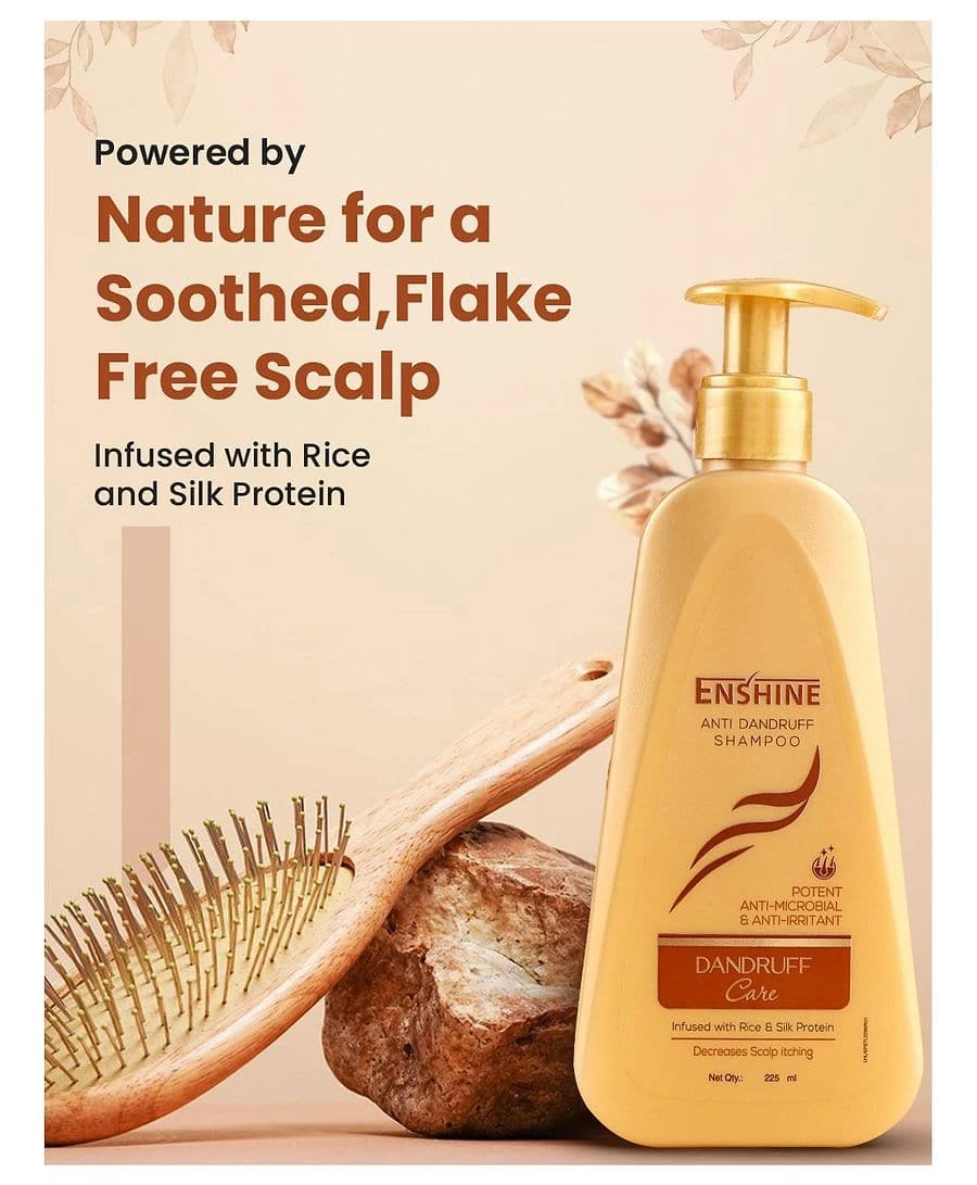 dandruff and Itchy chy scalp is here with Enshine Ant Dandruff Shampoo that relieves scalp imitation while clearing fakiness and build up It is mild for daly use and intused proteins leaves your hair silky & shiny