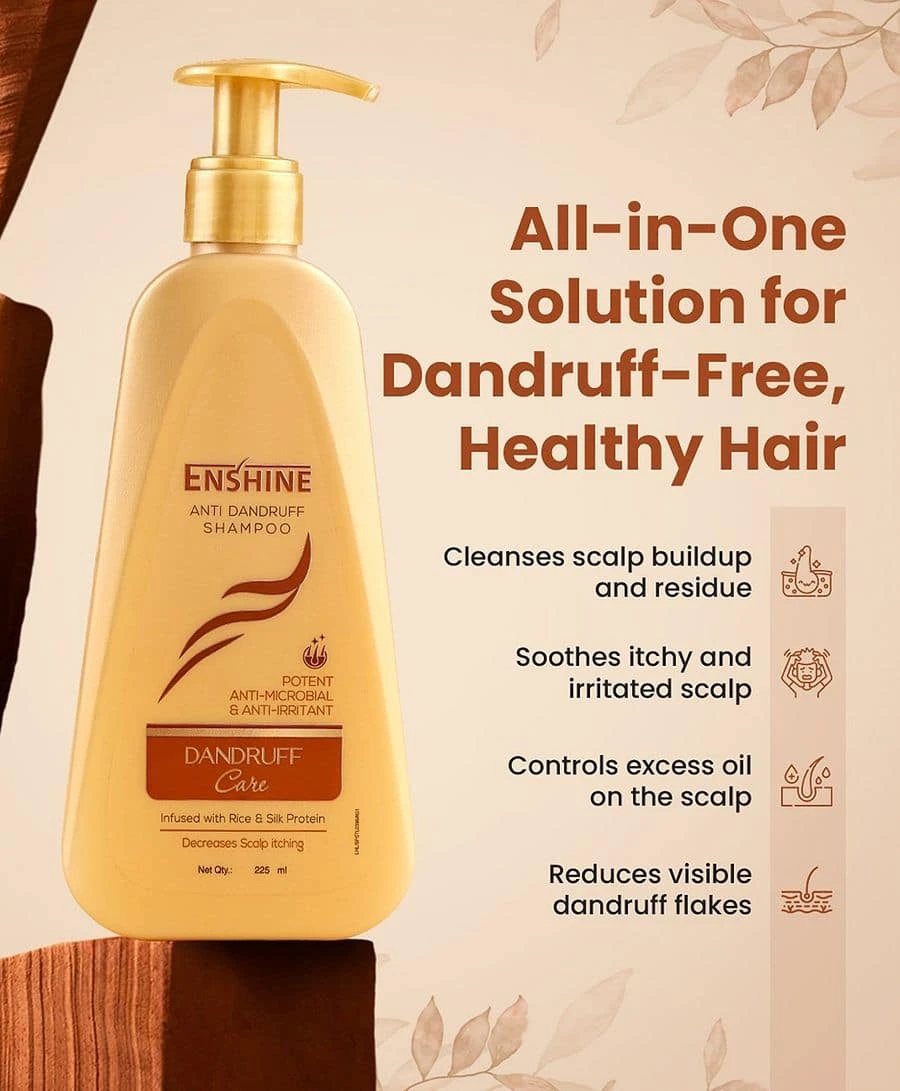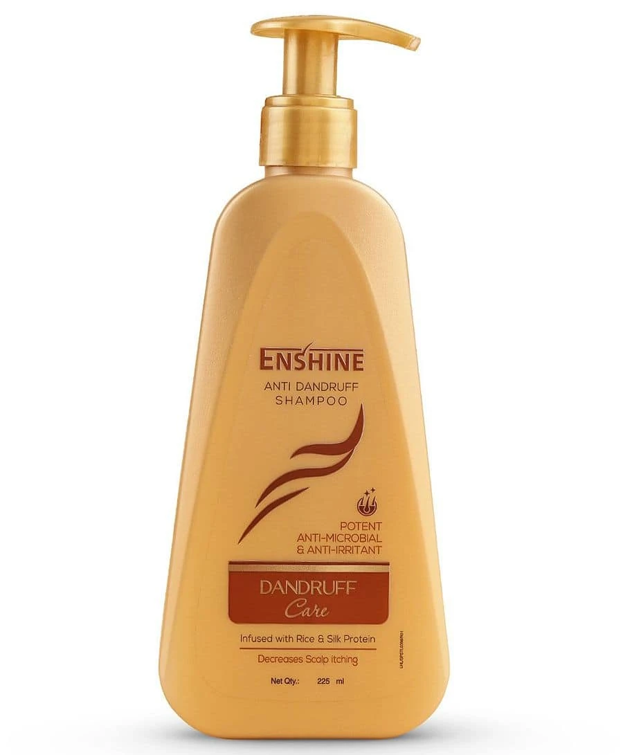 dandruff and Itchy chy scalp is here with Enshine Ant Dandruff Shampoo that relieves scalp imitation while clearing fakiness and build up It is mild for daly use and intused proteins leaves your hair silky & shiny