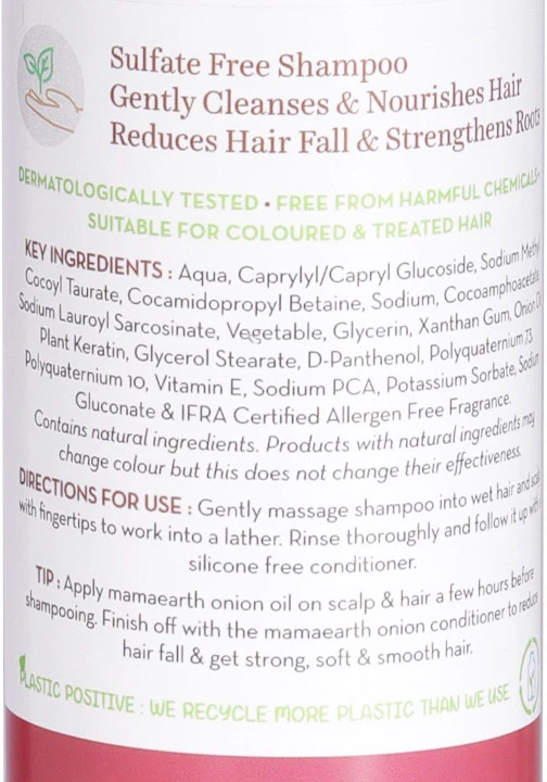 Acids, Soy Amino Acids, Arginine HCL, Serine & Thre CIONS FOR USE: Gently massage shampoo onto wet hairå ps to work into a lather. Rinse thoroughly and followi Mamaearth Onion Hair Fall Control Conditioner